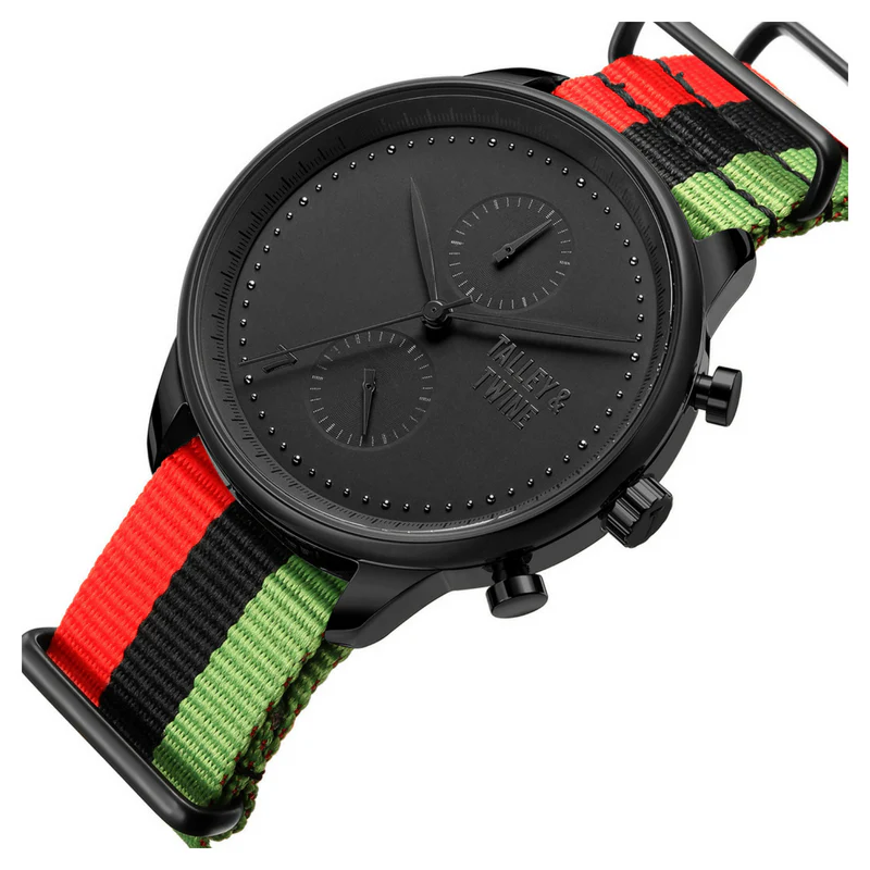Every detail of the Juneteenth Watch is a reflection of pride, heritage, and progress. The bold black case symbolizes strength, while the canvas band brings the spirit of the celebration to life. Featuring the signature seven, the dial serves as a reminder to finish what we start and honor the sacrifices and achievements of those who came before us.